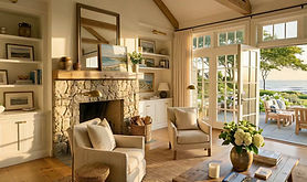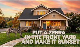 The scene begins with the original photo and animates into the upgraded version, such as a sunset transition, seasonal change, or empty to virtually staged room.